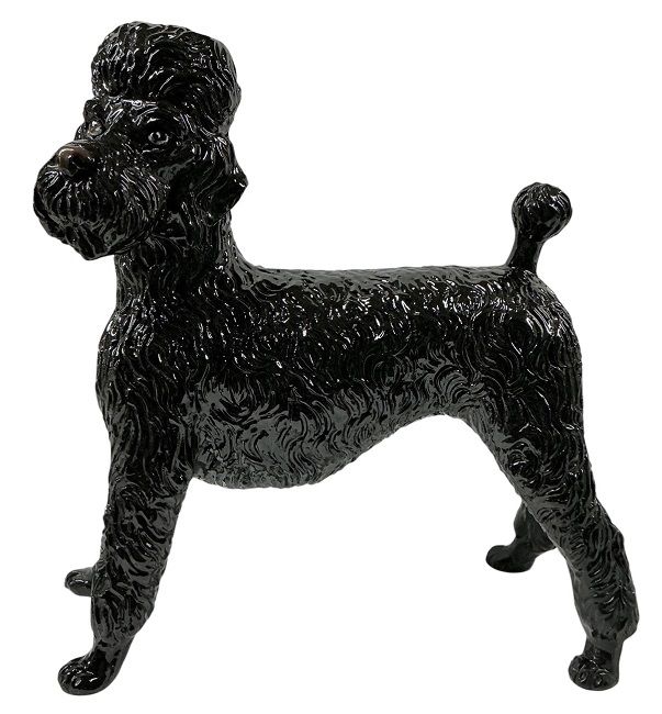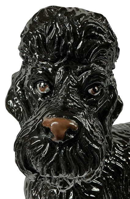 Needed; a good home for a well trained poodle.  This fabulous glazed black terracotta poodle is in ready for adoption.  Just look at this face!  Unmarked, attributed to Italy, mid-20th century.