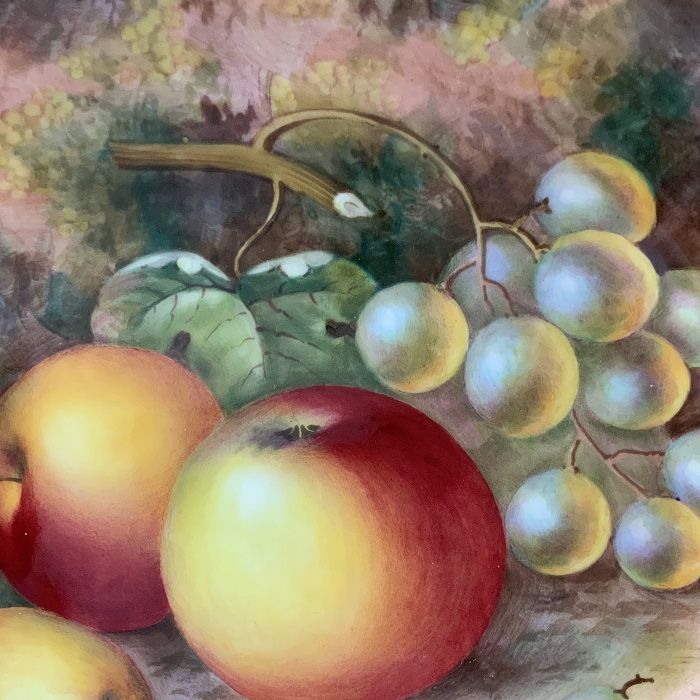 Harry Ayrton (1905-1976) worked  at Royal Worcester from 1920 until his retirement in 1970, although he continued to paint part time until his death in 1976.  Ayrton was trained to paint in different subjects, but he was most skilled in fruit painting and that is where Royal Worcester used his talents to best advantage.