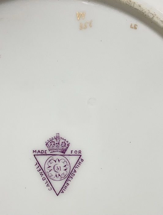 J.E. Caldwell & Co. of Philadelphia was established in 1839 as watchmakers, developing over the 19th century into a luxury retailer.  In the late Victorian era richly decorated porcelain wares from England were made exclusively for Caldwell, including Royal Worcester, Minton and Spode.