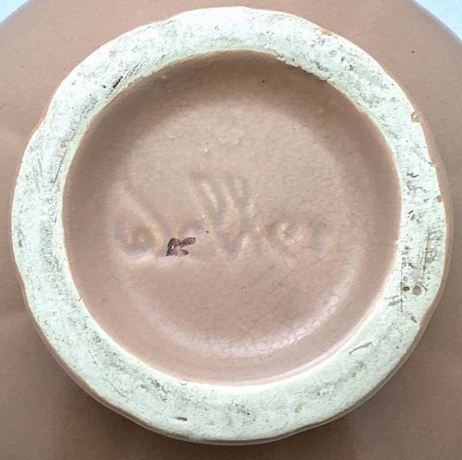 Weller “Cameo Rose” double handle vase, in peach and ivory, late 1930s.  Weller Art Pottery was established in Fultonham, Ohio in 1872, moving the factory to Zanesville, Ohio in 1882.  Weller was prolific in American art pottery production through the early 20th century, closing in 1948.