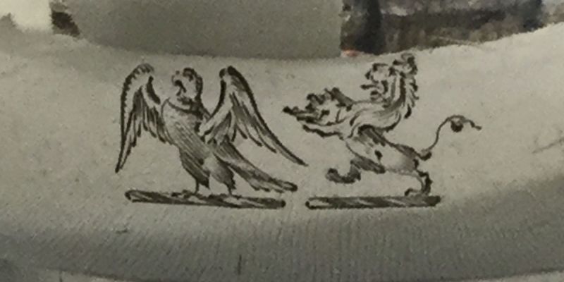 Crested with an eagle and a lion rampant holding a coronet.