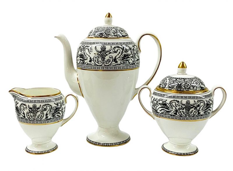 Wedgwood “Florentine Black” Bone China Coffee Service For 14