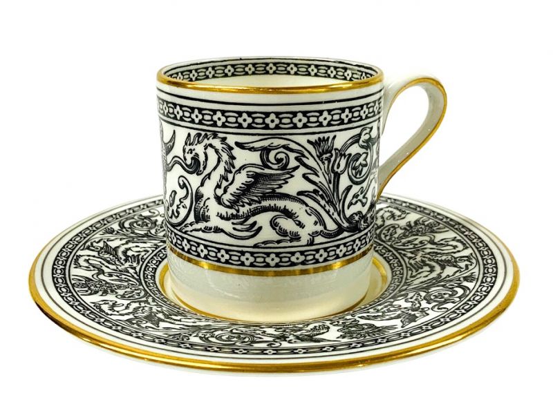 Florentine is one of the Wedgwood patterns produced in different colour combinations; Florentine Black being a timeless classic.  The pattern and colour combination was produced circa 1959-1997.