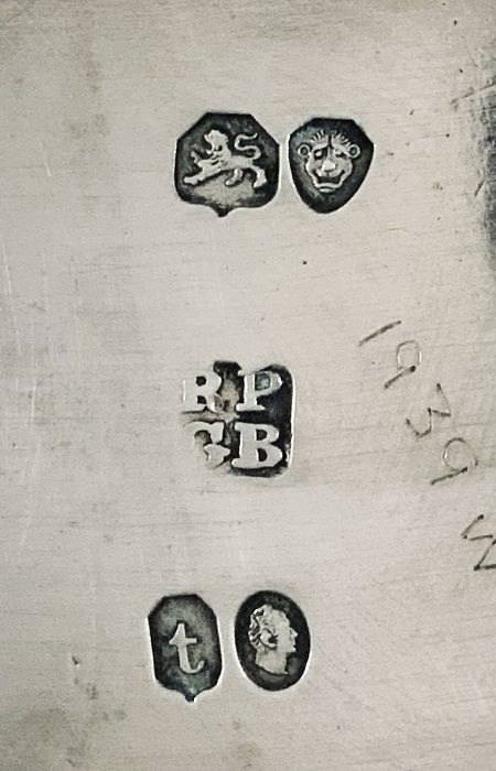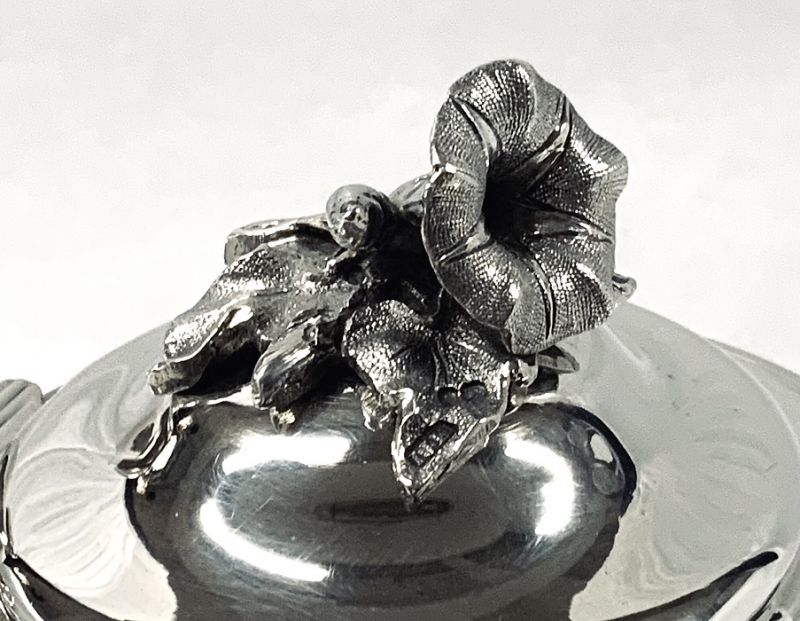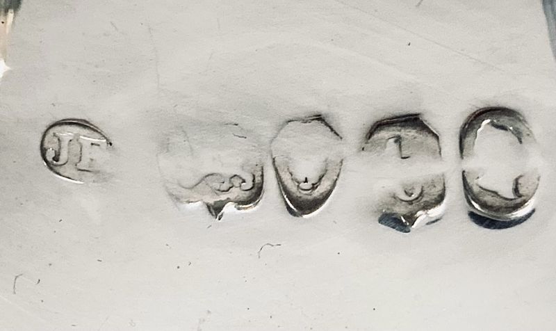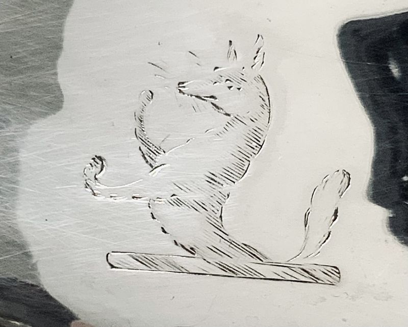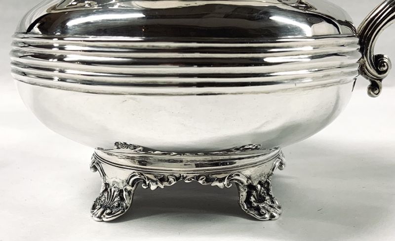 The coffee pot is from the silversmith John Evans II and is crested with a rampant fox.