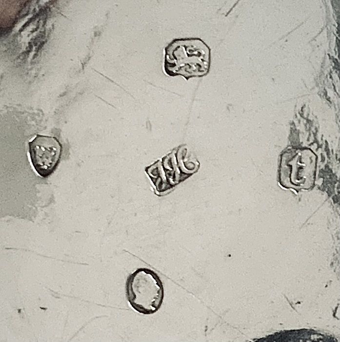 The cream jug and open sugar bowl are from the silversmiths Richard Pearce & George Burrows and are not crested.