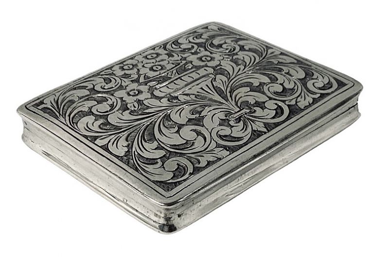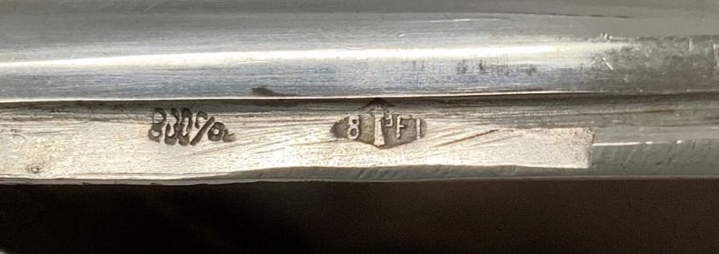 Vintage 800 Fine Silver card case from Florence, Italy.  Trademarked for the silversmith Bausi Bruno of Firenze (Florence) who registered his mark in 1935 (silversmith # 8 and FI for Firenze in a lozenge).