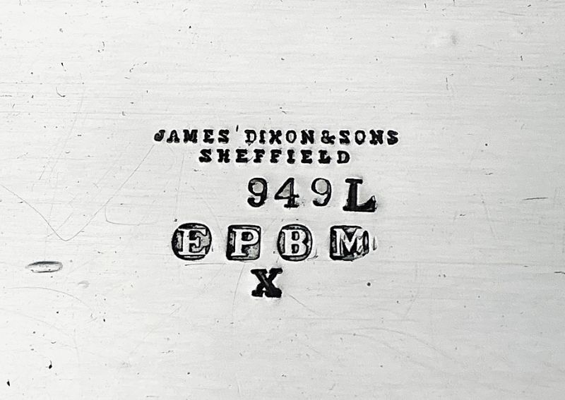 Victorian silver plate soap box, made by James Dixon & Sons of Sheffield, England.  The style of the trademark dates the box to the period of 1851-70.  Also marked EPBM / electro plate base metal.