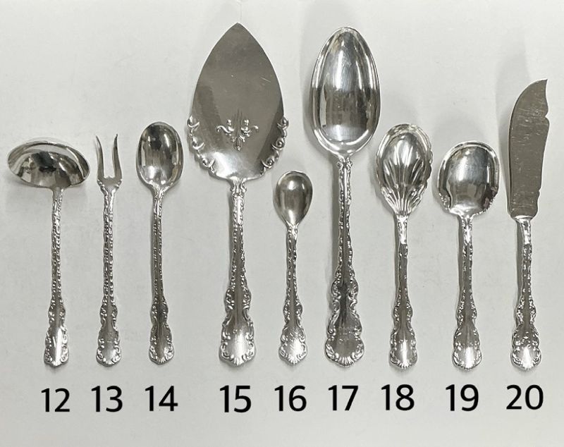 Antique and vintage Roden Brothers sterling silver Louis XV serving pieces.  We have a large inventory in stock, including a comprehensive place setting selection and many serving pieces, priced individually.  Roden Brothers was a multi-generation family silversmithing company, in business in Toronto circa 1891-1953.  Roden produced some of the same flatware patterns that Birks did, such as this design, Louis XV, as well as Old English and Queens.  The variations in design between Birks Louis XV and Roden Louis XV are very subtle and many Canadians have blended sets.  As Roden was producing Louis XV earlier then Birks there are some serving pieces shapes that are available by Roden Brothers only.
