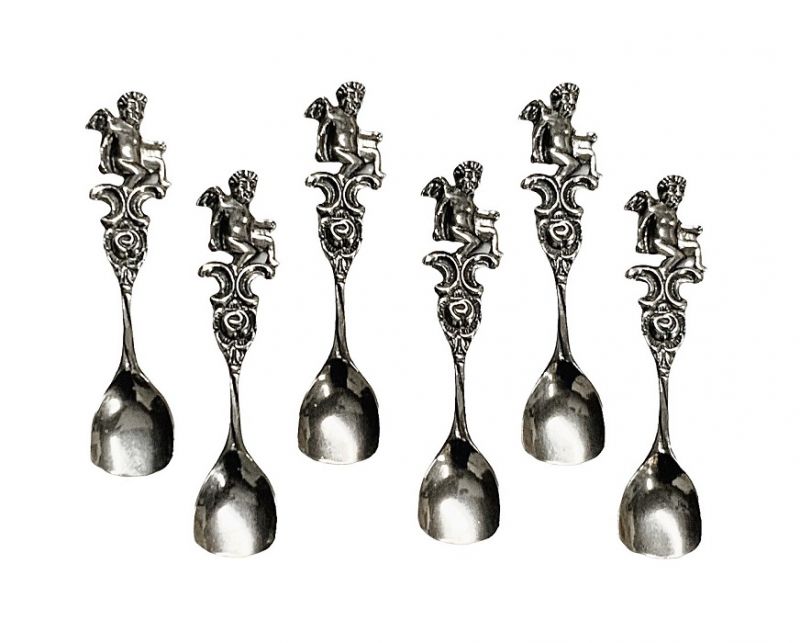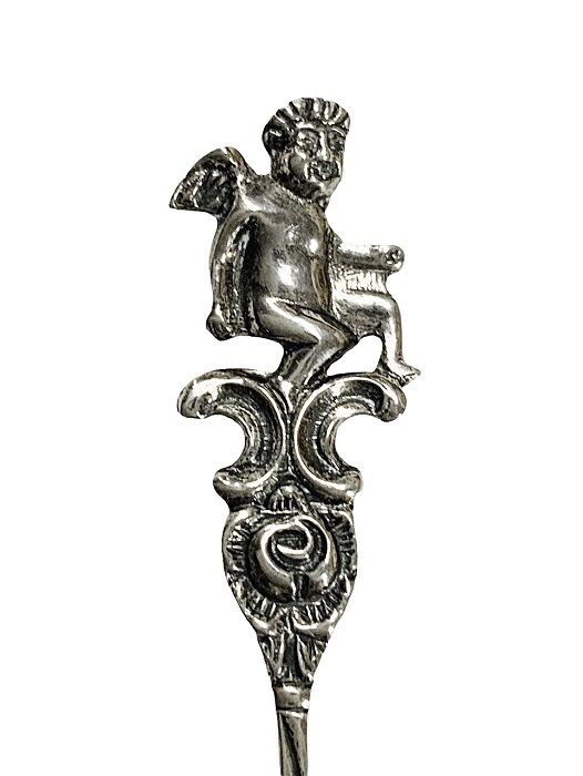 Figural Cherub Motif Salt Spoons, 800 Fine Silver