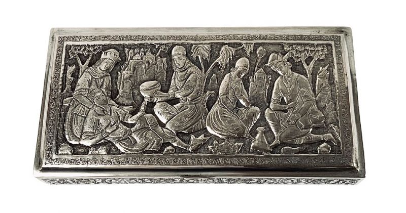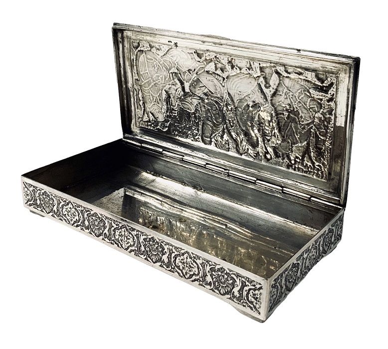 7 1/4” (18.4cm) by 5 1/8” (13cm), 1 1/8” (3cm) high.