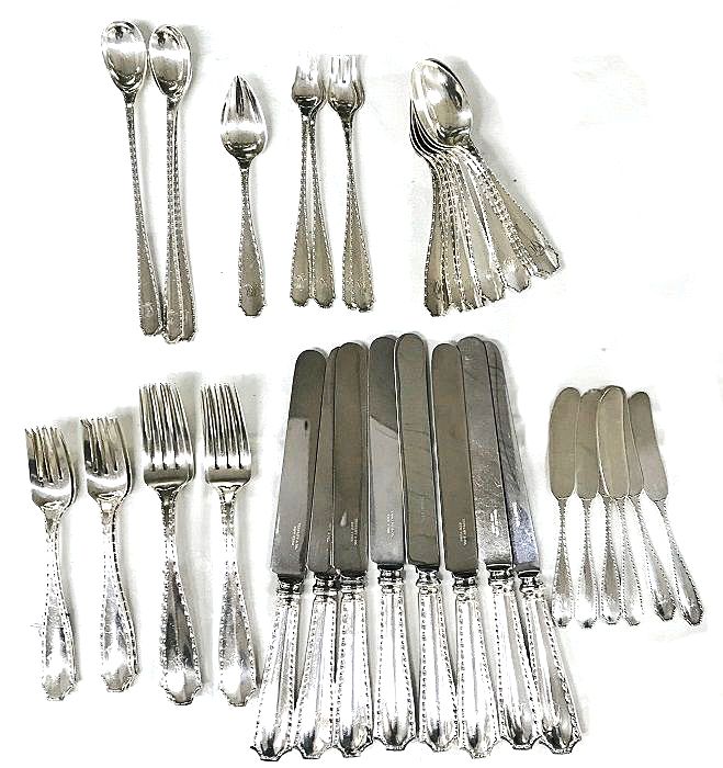 Tiffany & Co. sterling silver flatware “Marquise” pattern, designed by George Paulding Farnham (1859-1927).  Farnham was an American jewelry designer, sculptor and metallurgist who worked for Tiffany & Co. 1885-1908.