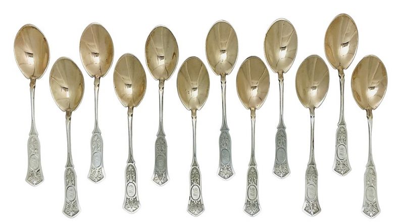 Victorian era Tiffany & Co. sterling silver ice cream spoons, circa 1870-90.
