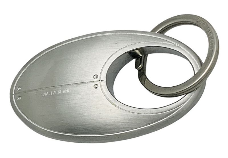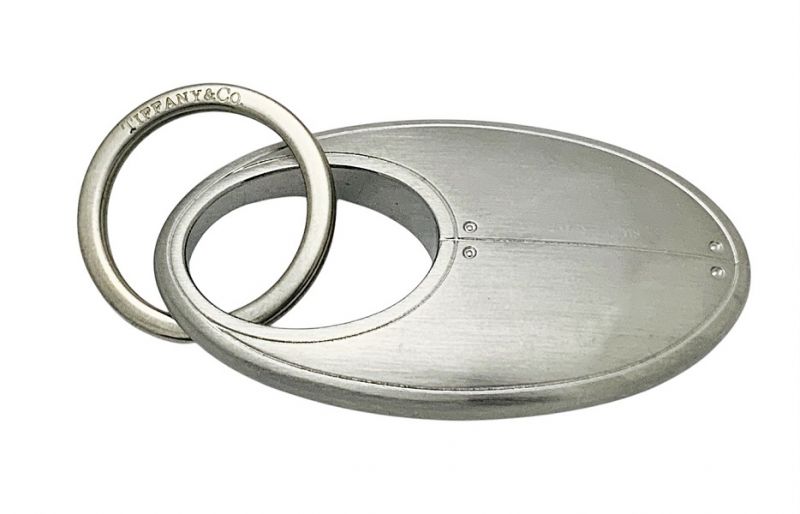 Vintage Tiffany & Co. “Streamerica” curviline oval key ring in brushed stainless steel.  The Streamerica line was introduced in 1990 with inspiration from aerodynamic designs of the New York World Fair of 1939.  The line borrowed from the aesthetics of bolted sheet metal of airplane construction.  This was the first time that Tiffany & Co. featured steel as a luxury material.  Made in Switzerland.