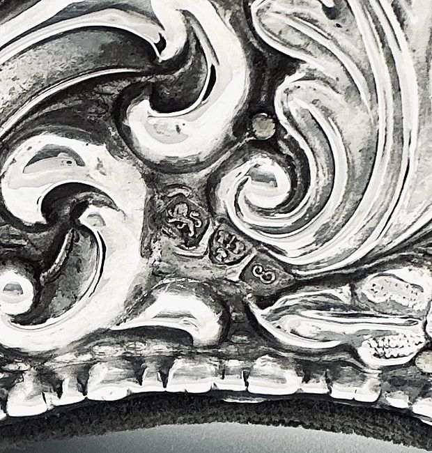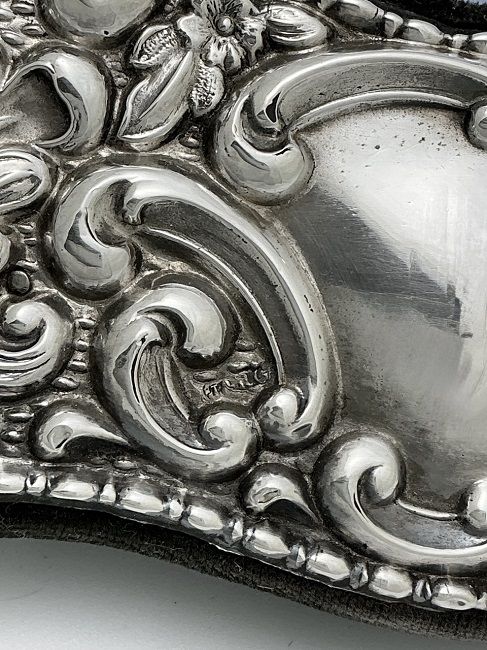 Antique Edwardian era English sterling picture frame, hallmarked Chester 1905.  Made by the silversmith firm of J & R Griffin (Joseph & Richard Griffin) of Hylton Street and Link Works, Soho Hill, Birmingham, in business circa 1896-1926.