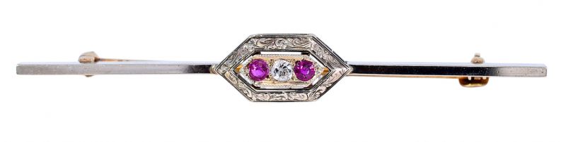 Antique .10ct Ruby and Diamond Bar Brooch in 14kt White Gold