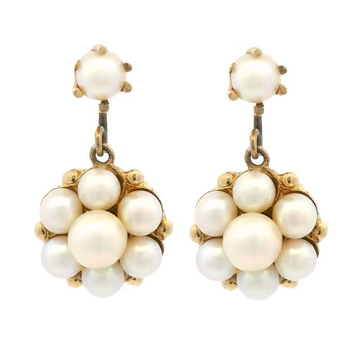 These timeless vintage 14kt. yellow gold earrings feature 16 cultured pearls measuring approximately 4.3 - 5.5mm.