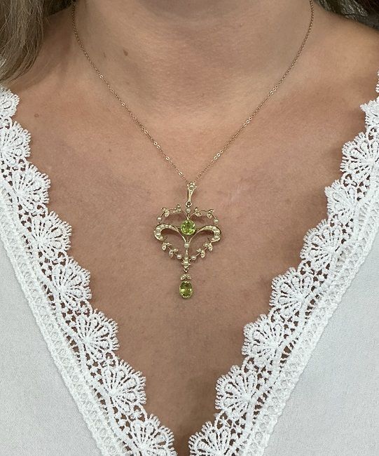 Antique 1.91ct Peridot and Pearl 15kt Pendant Brooch