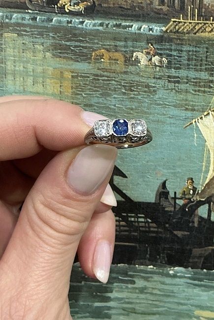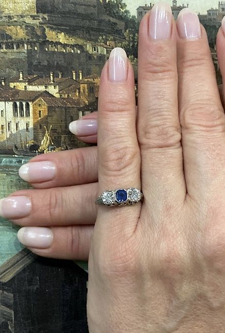 Antique .51ct Sapphire Engagement Ring in 18kt White Gold