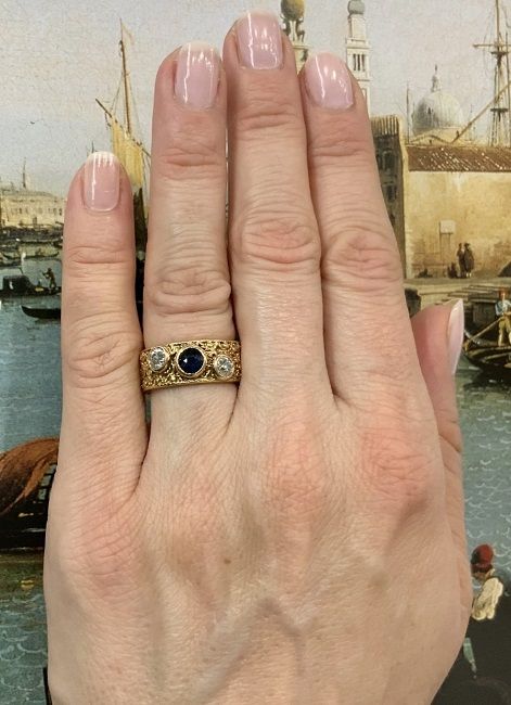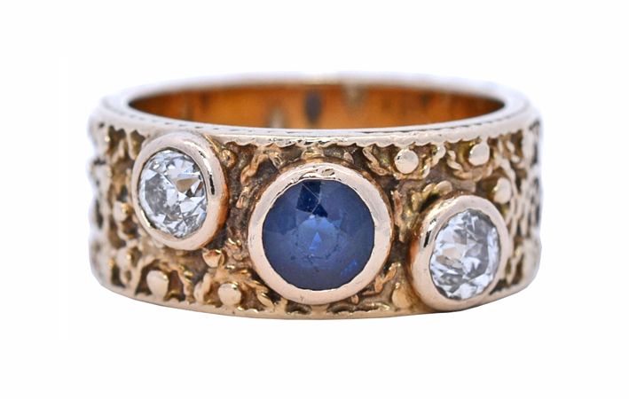 Vintage .74ct Sapphire and 2 Diamond 14kt Ring