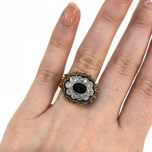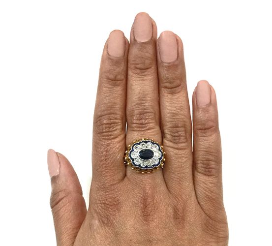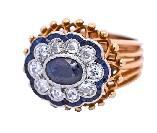 Vintage 1.16ct Sapphire and Diamond Cluster Platinum and 20kt Ring