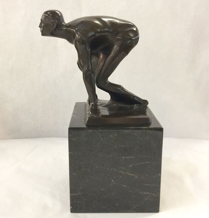 Titled " Sprinter at the Start" circa 1921 set on a marble base.
