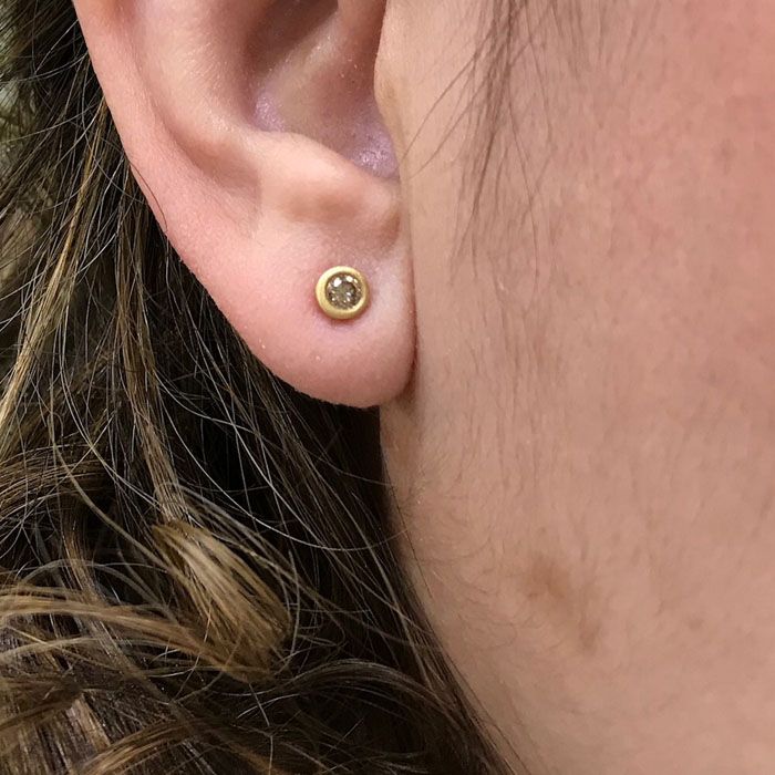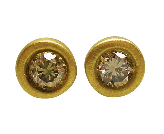 One 18 karat yellow gold earrings. Two round brilliant cut brown diamonds (0.20 carats: SI1-SI2 clarity: light brown colour).