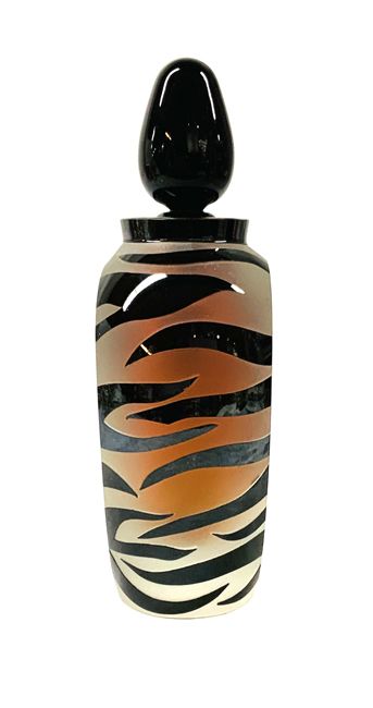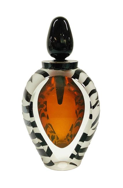 Correia Art Glass Perfume; Amber and Clear Glass with Black Stripes; Limited Edition #343/500