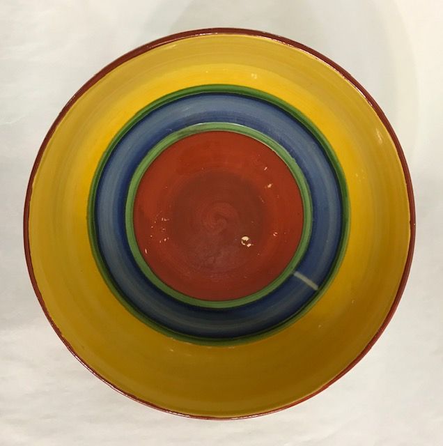 Clarice Cliff hand painted Bizarre Ware fruit bowl, painted in bold primary colours.