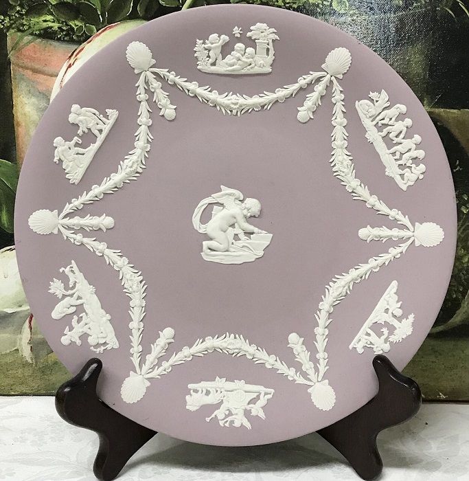 Wedgwood Jasperware Lavender cabinet plate depicting various scenes with Cupid.