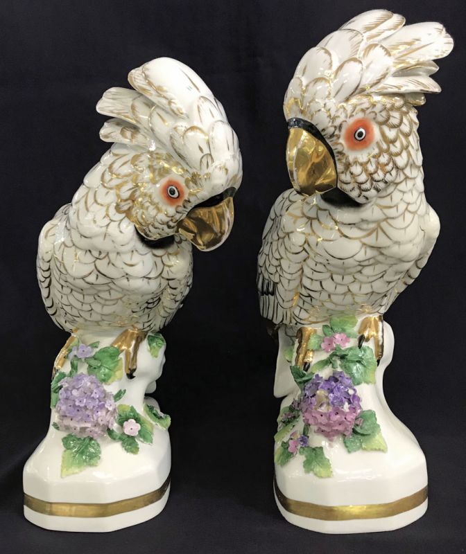 The taller bird is 12 3/4” high.  The bases are 4” by 7”.