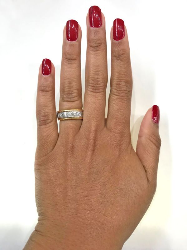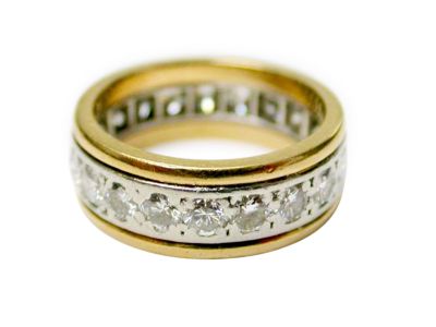 One 18 karat yellow and white gold diamond band. Twenty round brilliant cut diamonds (2.01 carats: VS clarity: G-H colour).