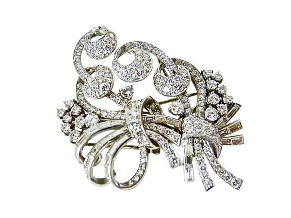 Platinum and 14k white gold double clip (detachable) floral brooch with