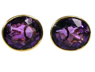 One pair of 14 karat yellow gold earring clips. Two amethyst (21.67 carats). These earrings could be adapted to be peirced.