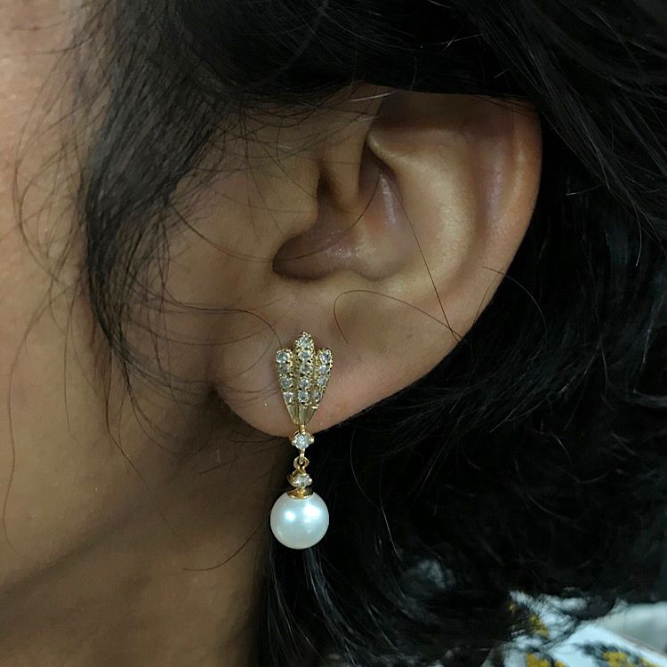 Vintage Pearl and Diamond Drop Earrings