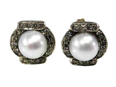 Vintage inspired Pearl and Diamond Stud Earrings