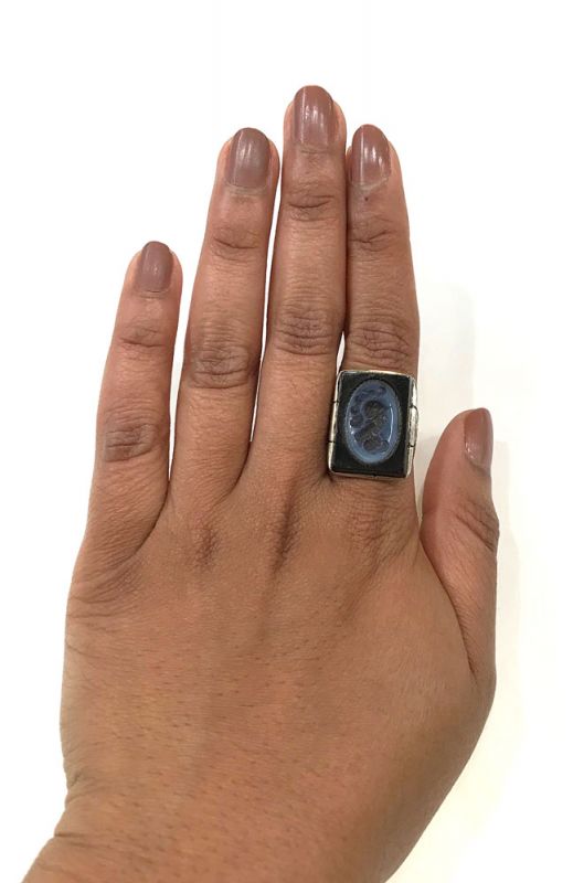 One 14 karat white gold intaglio ring. One custom-cut rectangular sardonyx intaglio depicting a Roman soldier facing to the ring.