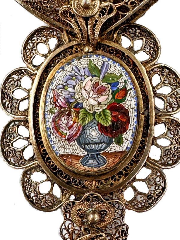 Micro Mosaic Pendant set in Silver Gilt Filigree