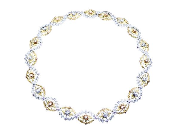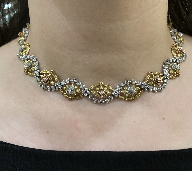 A beautiful diamond and ruby necklace set in 18kt. yellow gold, rose gold and platinum.