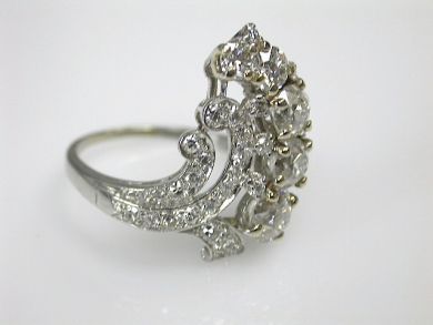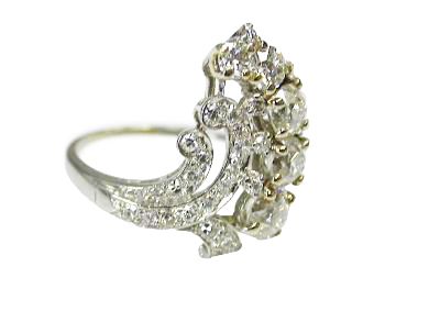 A beautiful vintage platinum ring, made by Birks Canada featuring 3 old European cut diamonds, est. 1.68ct (VS-SI2 clarity: J-K colour); 2 old European cut diamonds, est. 0.39ct (VS clarity: H-I colour) and 34 old European and English star cut diamonds, est. 0.72ct (SI clarity & F-G colour).
