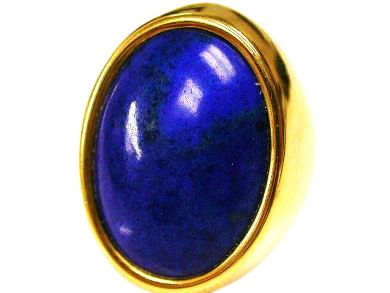 One custom-made 14 karat yellow gold ring. One lapis Lazuli (14.05 carats: Deep blue colour with minor marbling).
