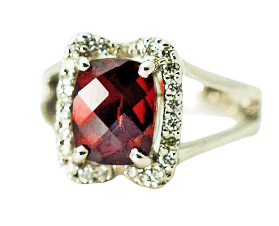 Featuring 1 checkerboard top cushion cut deep red garnet, est. 2.48ct.