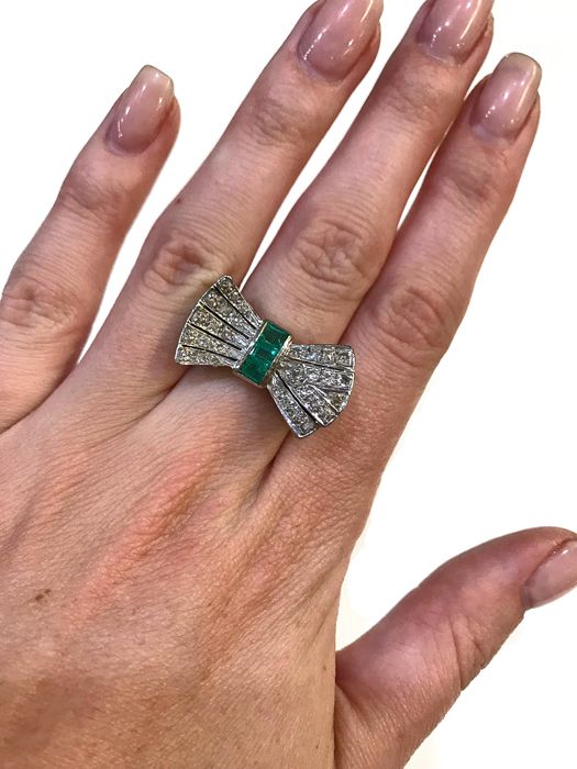 Retro Emerald and Diamond Ring