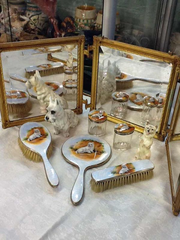 Enamel on Sterling Silver 5 Piece Terrier Motif Dresser Set (Excellent Condition) $6900.00
