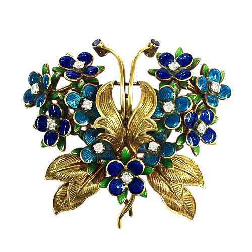 Tiffany & Co. Diamond and Enamel Floral Brooch