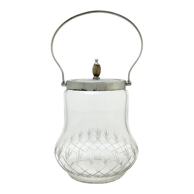 Vintage English Cut Glass Biscuit Barrel with Silver Plated Mounts, C.1920